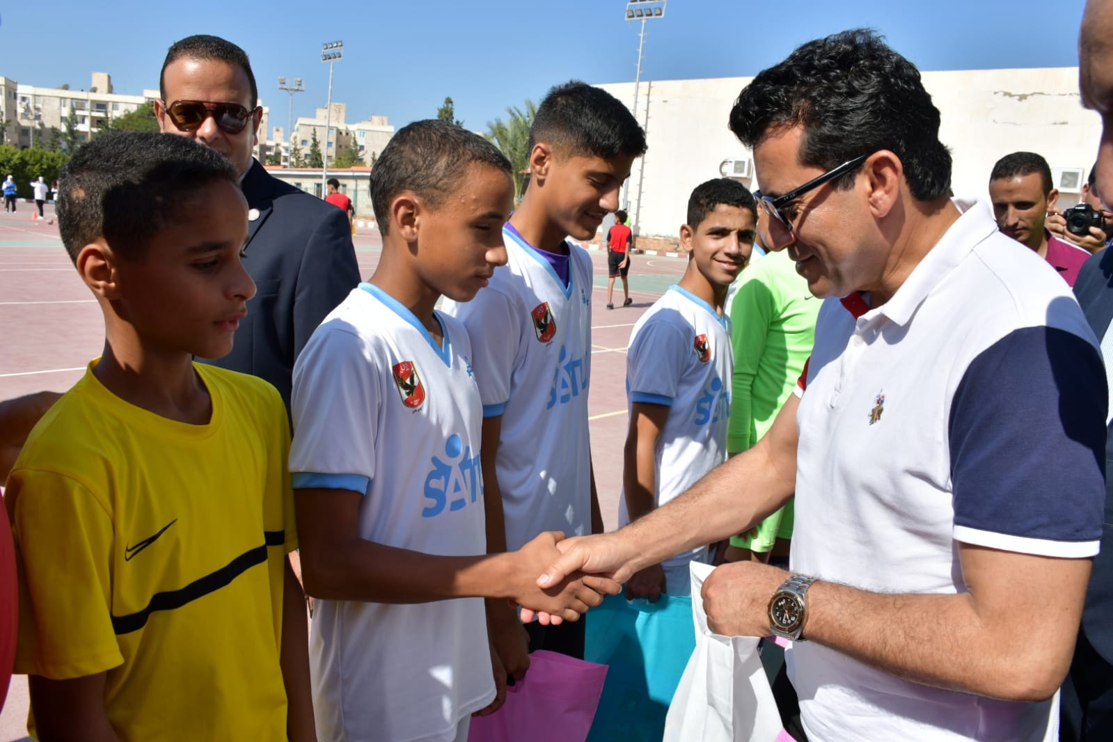 أعرب وزير الشباب والرياضة عن سعادته بحضور هذا اللقاء المخصص للأيتام، والذي يمثل نتاجًا لجهود مستمرة لتأهيل الأطفال الأيتام وتمكينهم من الاستفادة من الفرص الرياضية والتدريبية، وتوفير الفرص اللازمة لهم لتحقيق طموحاتهم وتطوير مهاراتهم، والذي يعكس حرص واهتمام وزارة الشباب والرياضة بتحقيق التنمية الشاملة وتوفير الفرص المناسبة للفئات الأكثر احتياجًا في المجتمع.