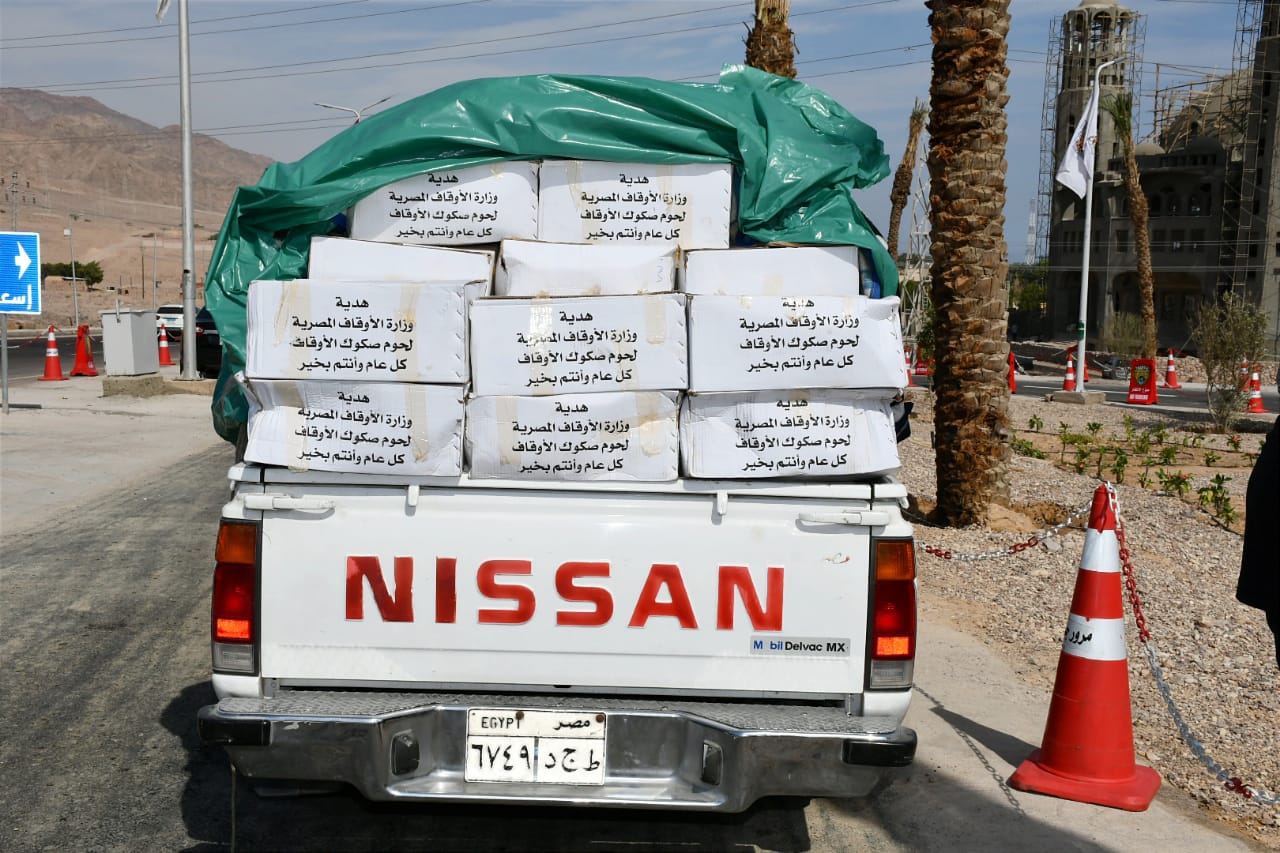 تفقد الدكتور محمد مختار جمعة وزير الأوقاف واللواء خالد فودة محافظ جنوب سيناء اليوم الجمعة ٢٧ أكتوبر ٢٠٢٣م توزيع الدفعة الرابعة من لحوم الأوقاف بواقع (2) طن؛ وعدد ألف شنطة مواد غذائية بمحافظة جنوب سيناء، وذلك بحضور الدكتور شوقي علام مفتي الديار المصرية، واللواء أحمد الإسكندراني السكرتير العام للمحافظة، واللواء محمد شعير السكرتير العام المساعد للمحافظة، واللواء محمود عيسى مفوض المحافظ، والشيخ إسماعيل الراوي مستشار المحافظ لشئون المساجد.