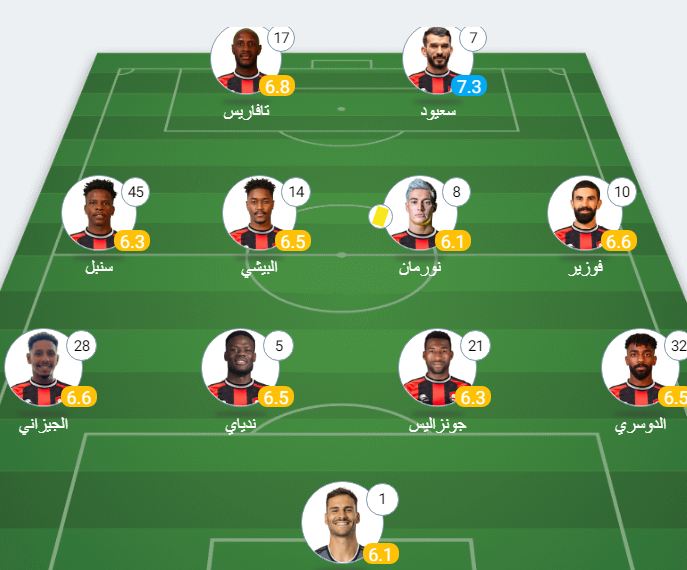 خط الدفاع: الدوسري، جونزاليس، ندياي، الجيزاني