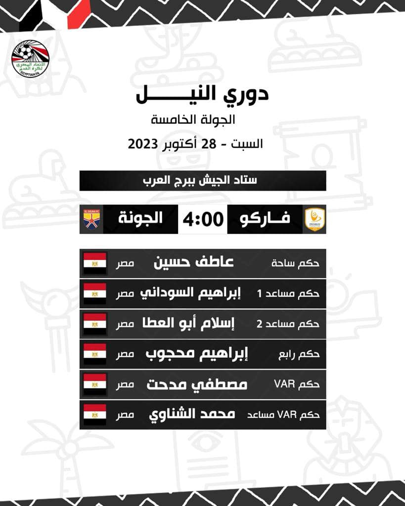 الدوري المصري، أعلنت لجنة الحكام برئاسة فيتور بيريرا حكام مباريات غدا السبت، ضمن مواجهات مباريات الجولة الخامسة لمسابقة الدوري المصري الممتاز موسم 2023-2024.