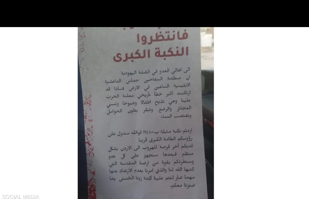 تفاصيل منشور إسرائيلي يهدد الضفة الكبرى بنكبة كبرى