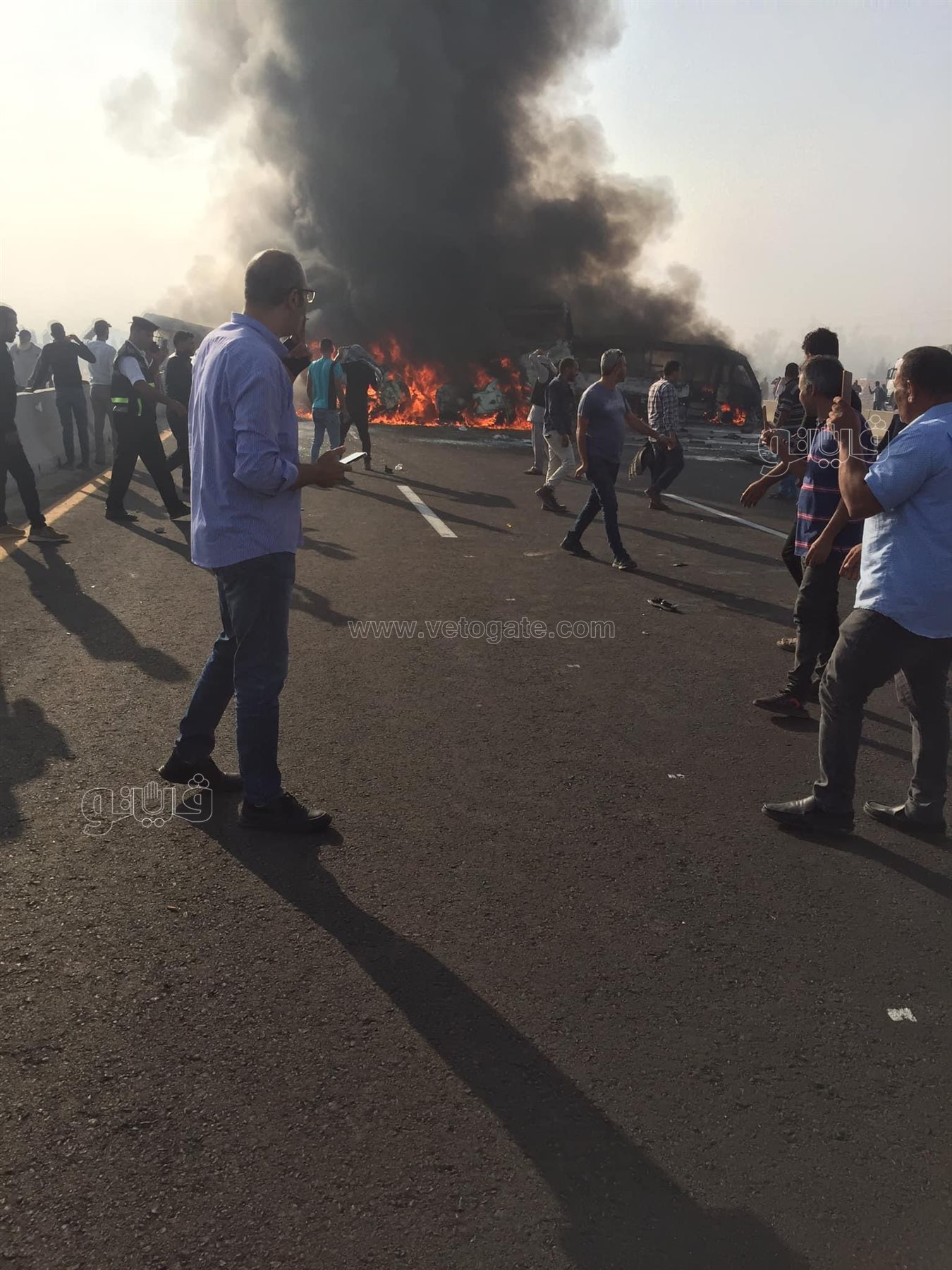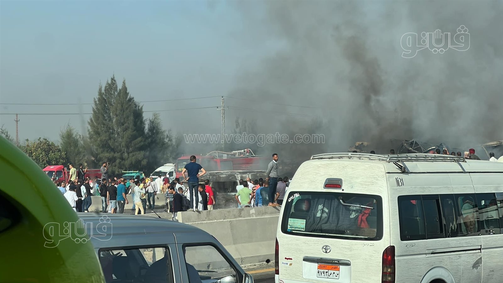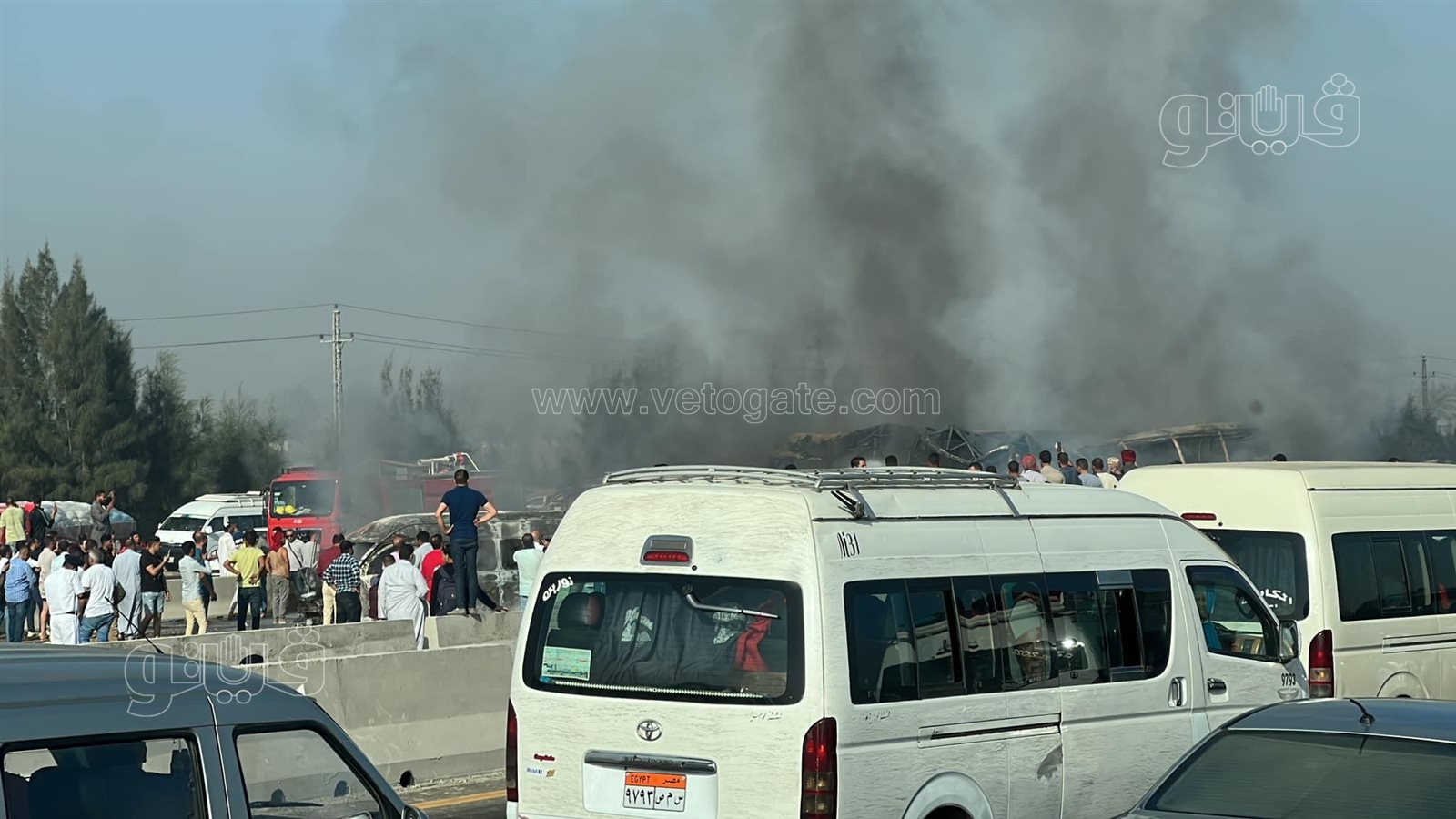 حصلت فيتو على صور جديدة، لحادث تصادم مروع وتفحم عدة سيارات وتصادمها ببعضها البعض بطريق اسكندرية الصحراوي مما أدى لمصرع ١٢ شخصا بينما أصيب ٥٧ شخصا آخرين.