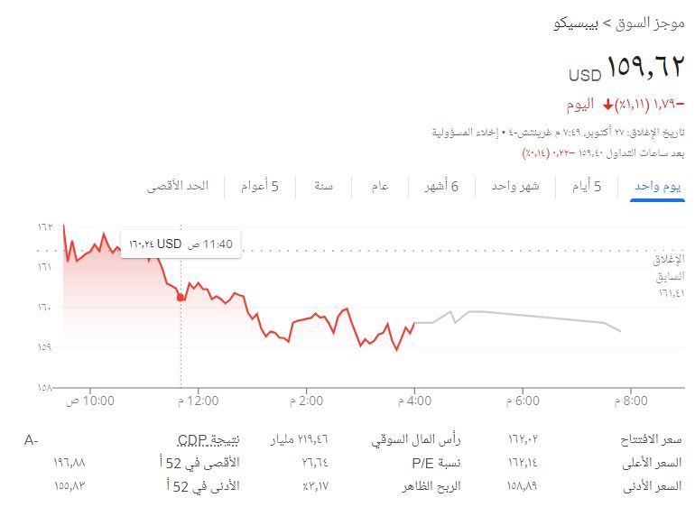 وفي السياق ذاته، لم تنج شركة بيبسيكو أيضًا من عواقب موقفها في السوق وسجلت أسهم الشركة تراجعا بنسبة 0.58%، إذ هبطت من سعر الافتتاح البالغ 162.62 دولارا إلى 161.41 دولارا في ختام التعاملات.