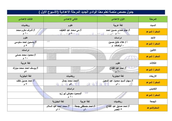 وأوضح وكيل التعليم بالوادى الجديد أن البرنامج يبدأ بتقديم الحصص التفاعلية للطلاب ( on line ) حسب الجدول المرفق بالإستعانة بنخبة متميزة من المعلمين الأكفاء المتميزين ذوى الخبرات بالمواد الدراسية المختلفة.