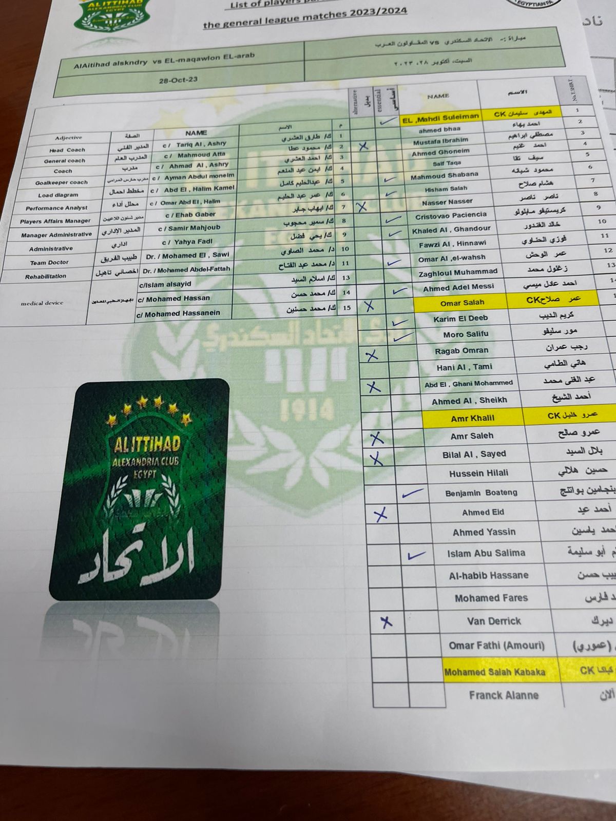 وجاء تشكيل الاتحاد السكندري كالتالي:"