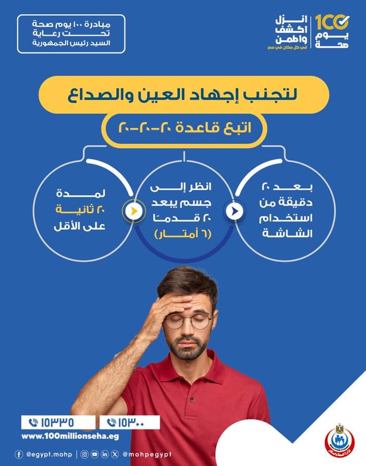 ووجهت وزارة الصحة نصائح للتخلص من الإجهاد وتجنب إجهاد العين والصداع.