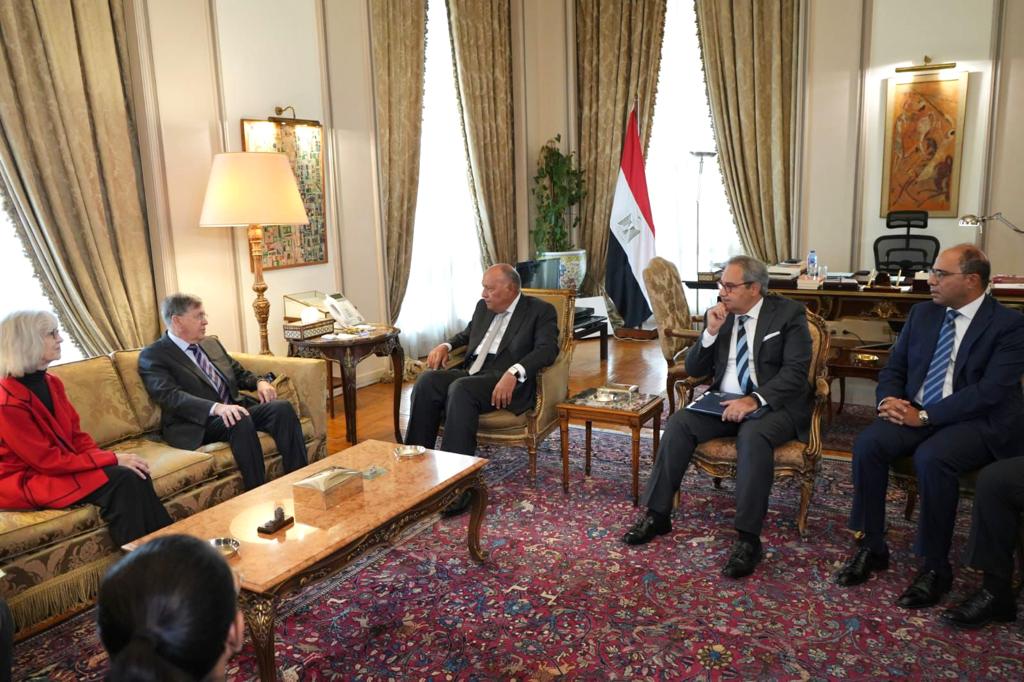 وزير الخارجية يبحث مع المبعوث الأمريكي للقضايا الإنسانية أهمية استمرار تدفق المساعدات لغزة