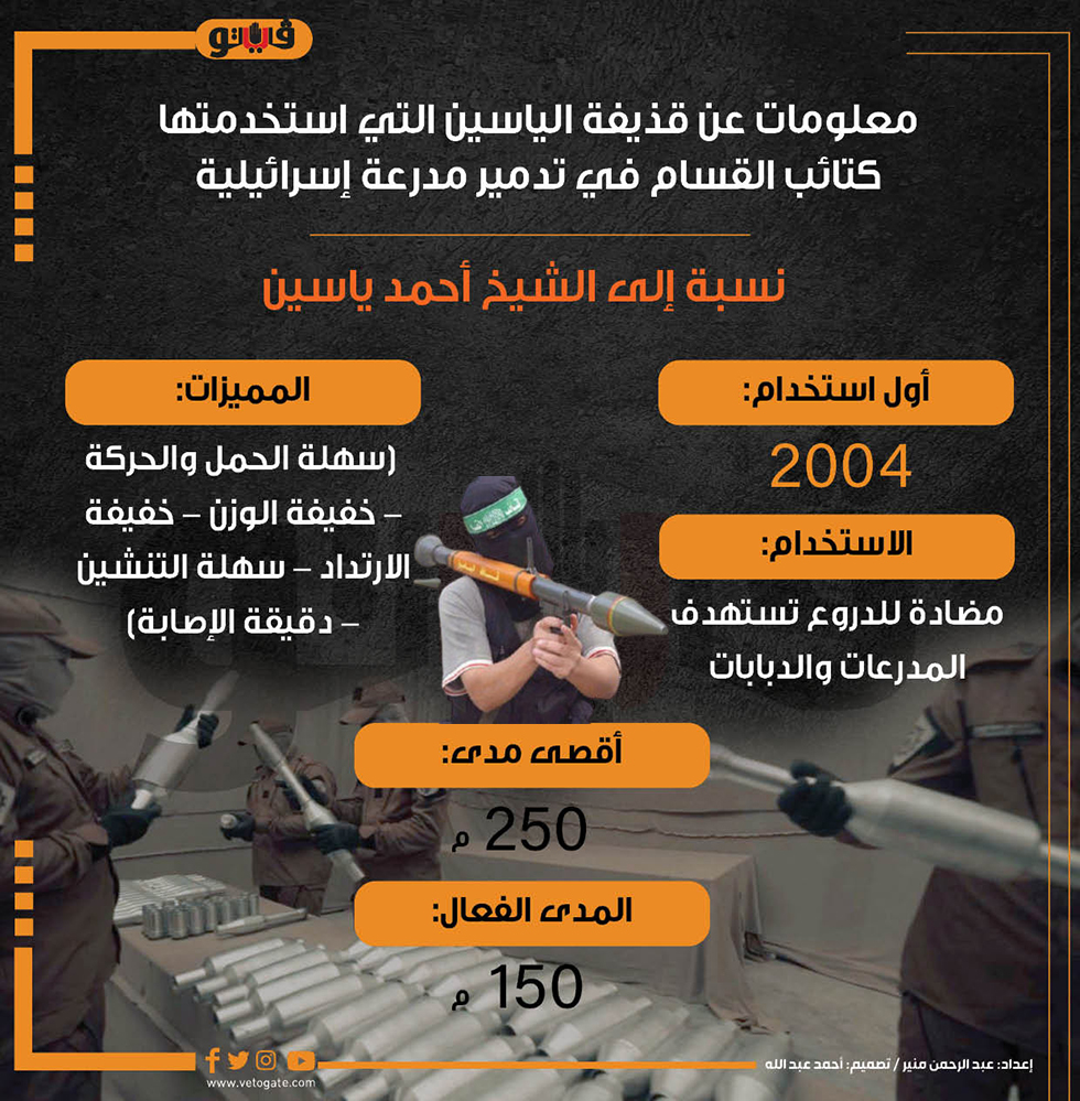 معلومات عن قذيفة الياسين التي استخدمتها كتائب القسام في تدمير مدرعة إسرائيلية (انفوجراف) الإثنين 30/أكتوبر/2023 - 03:50 م 10/30/2023 3:50:42 PM القذيفة الياسين، فيتو عبدالرحمن منير شارك طباعة 18 حجم الخط شارك طباعة غزة المقاومة الفلسطينية دبابات تتوغل في قطاع غزة فلسطين