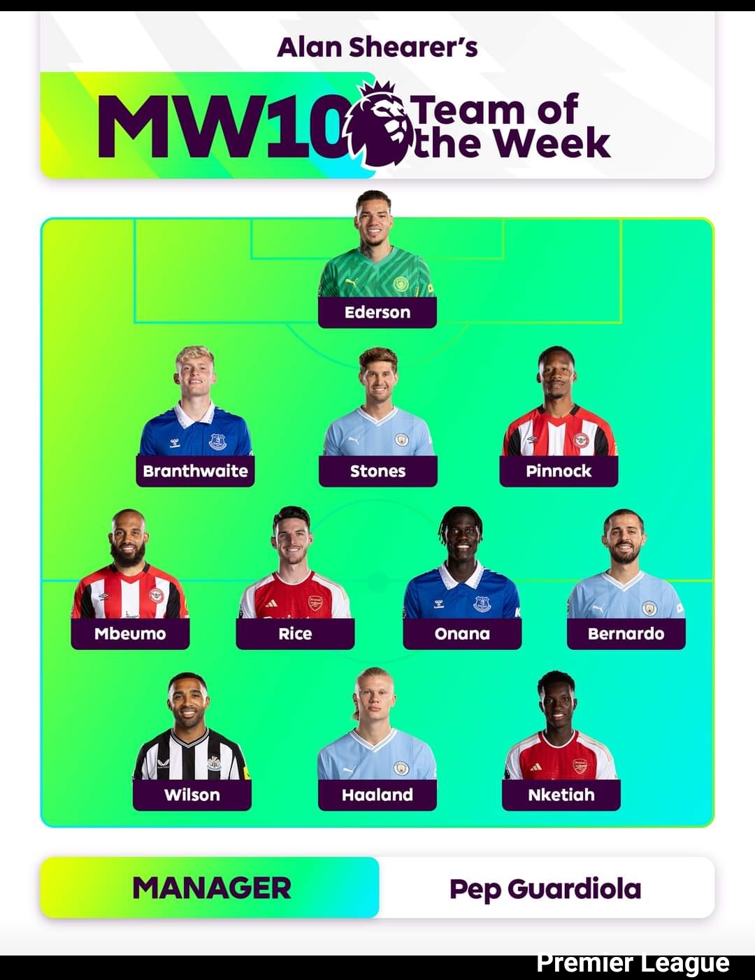 خط الهجوم: نيكيتاه ( ارسنال )، هالاند ( مان سيتي)، ويلسون ( نيوكاسل ).