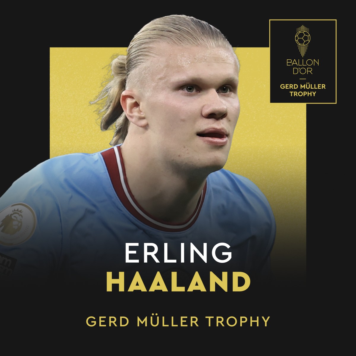 توج النرويجي إيرلينج هالاند بجائزة جيرد مولر كأفضل هداف في العالم، حيث احتل المركز الأول كأكثر لاعبي العالم إحراز للأهداف ونافسه علي الجائزة البولندي ليفاندوفسكي والارجنتيني ميسي والفرنسي مبابي.