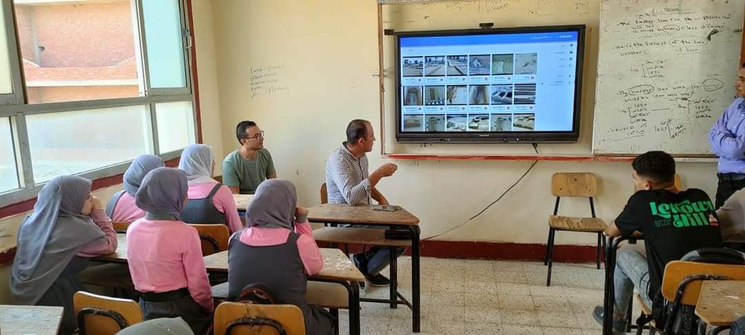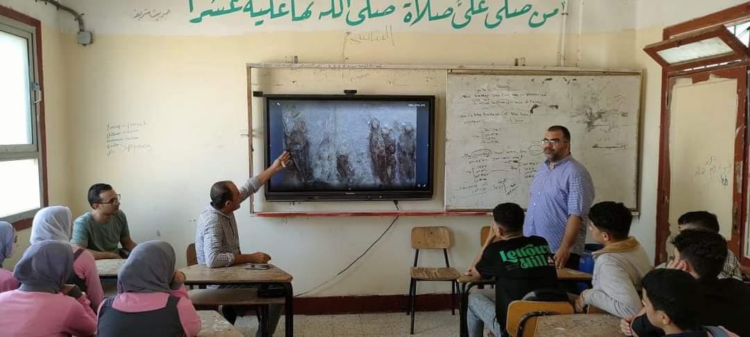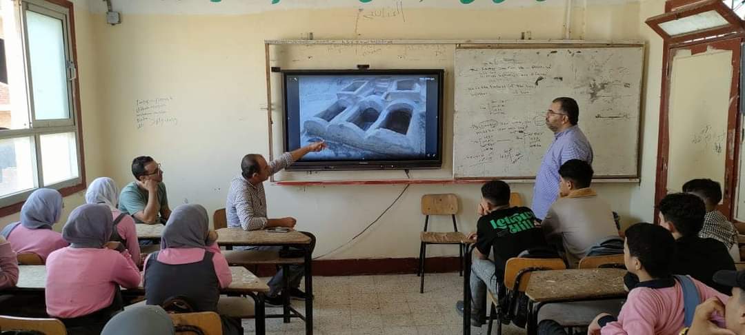 كما تم عرض العديد من الصور للمناطق الأثرية والمقابر التاريخية داخل محافظة الإسماعيلية بواسطة الشاشة التفاعلية في المدرسة.