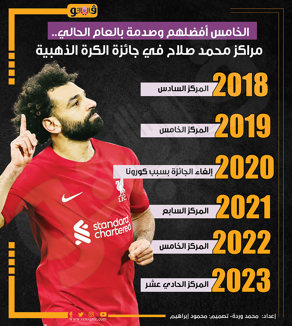 الخامس أفضلهم وصدمة بالعام الحالي.. مراكز محمد صلاح في جائزة الكرة الذهبية (إنفوجراف)