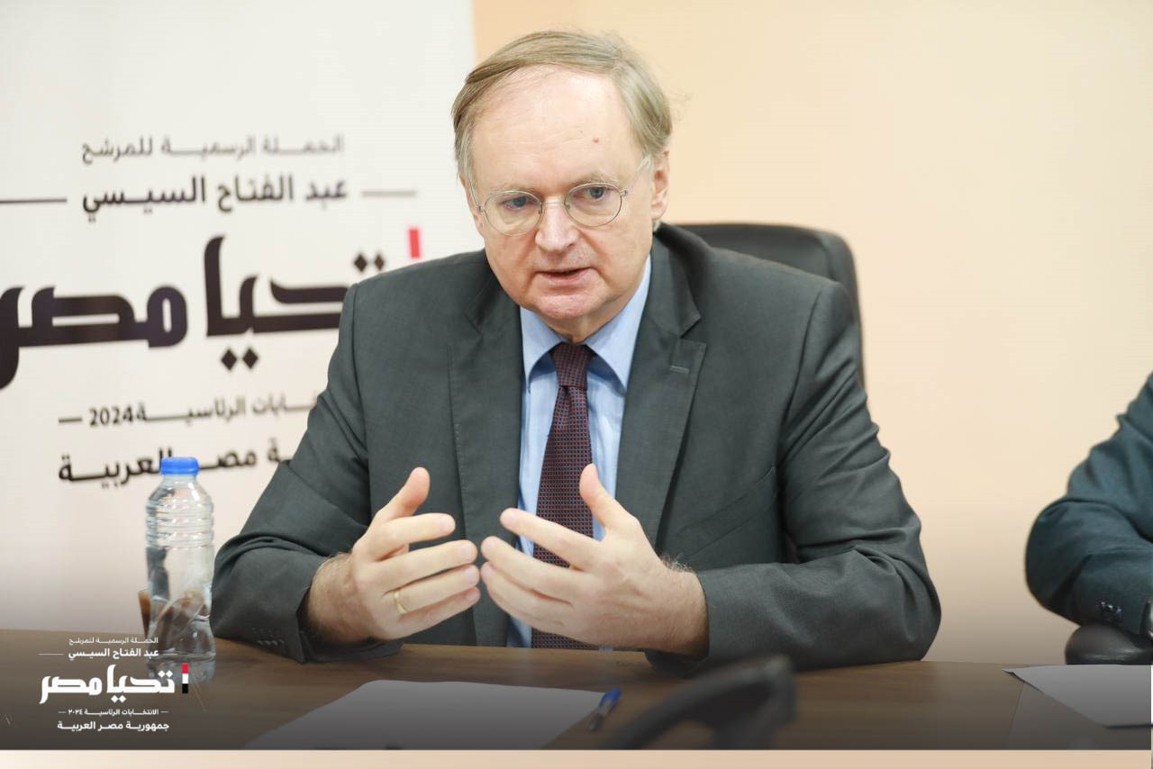 ومن جانبه أكد ممثل الاتحاد الأوروبي حرصه على اللقاء بالحملة الرسمية للمرشح الرئاسي السيد عبد الفتاح السيسي ضمن لقاءاته لكافة حملات المرشحين الرئاسيين، موضحًا حرصهم للتعرف على رؤية الحملة حول عدد من القضايا منها الاقتصادية وكيفية مخاطبة المواطن المصري، مؤكدين أن الدولة المصرية والاتحاد الأوروبي على قدم المساواة في أهمية احترام القانون الدولي وأن رؤية الاتحاد الأوروبي تتفق مع رؤية الدولة المصرية في قضية الهجرة غير الشرعية وتحقيق حياة كريمة، موضحًا أن خلق فرص عمل للشباب التي تعمل الدولة المصرية على توفيرها في جميع المجالات يتطلب تدريبًا وهو ما يتطلع إليه الاتحاد الأوروبي.