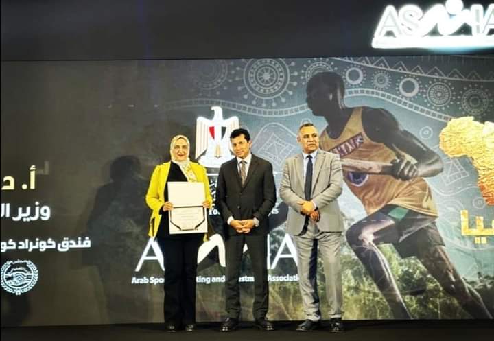 كرم الدكتور أشرف صبحي وزير الشباب والرياضة، اليوم الدكتورة منى عثمان، وكيل وزارة الشباب والرياضة بالدقهلية، فى ختام الملتقي الدولي الثاني للاستثمار والصناعة الرياضية فى مصر وأفريقيا، وذلك لاختيار سيادتها عضو اللجنة العليا بالملتقى الدولي الثاني للاستثمار والصناعة الرياضية،