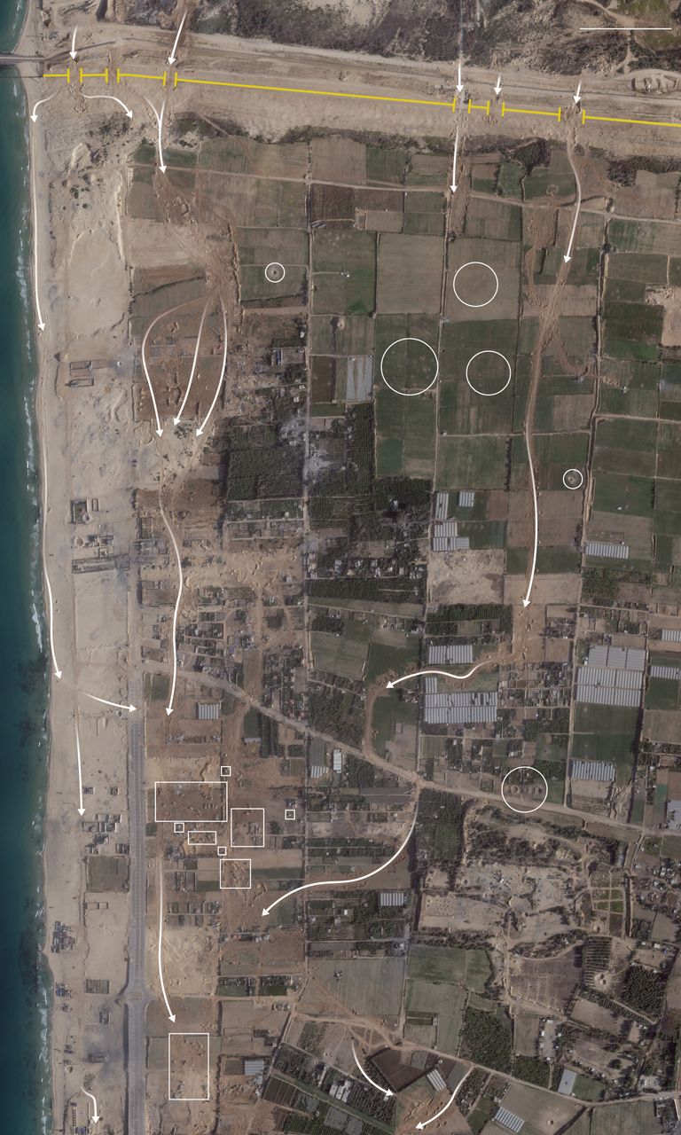 وشوهدت صفوف من الآليات المدرعة على الطريق الرئيسي "صلاح الدين" الممتد من شمال قطاع غزة إلى جنوبه، وكذلك في الزاوية الشمالية الشرقية من القطاع، في بلدة بيت حانون.