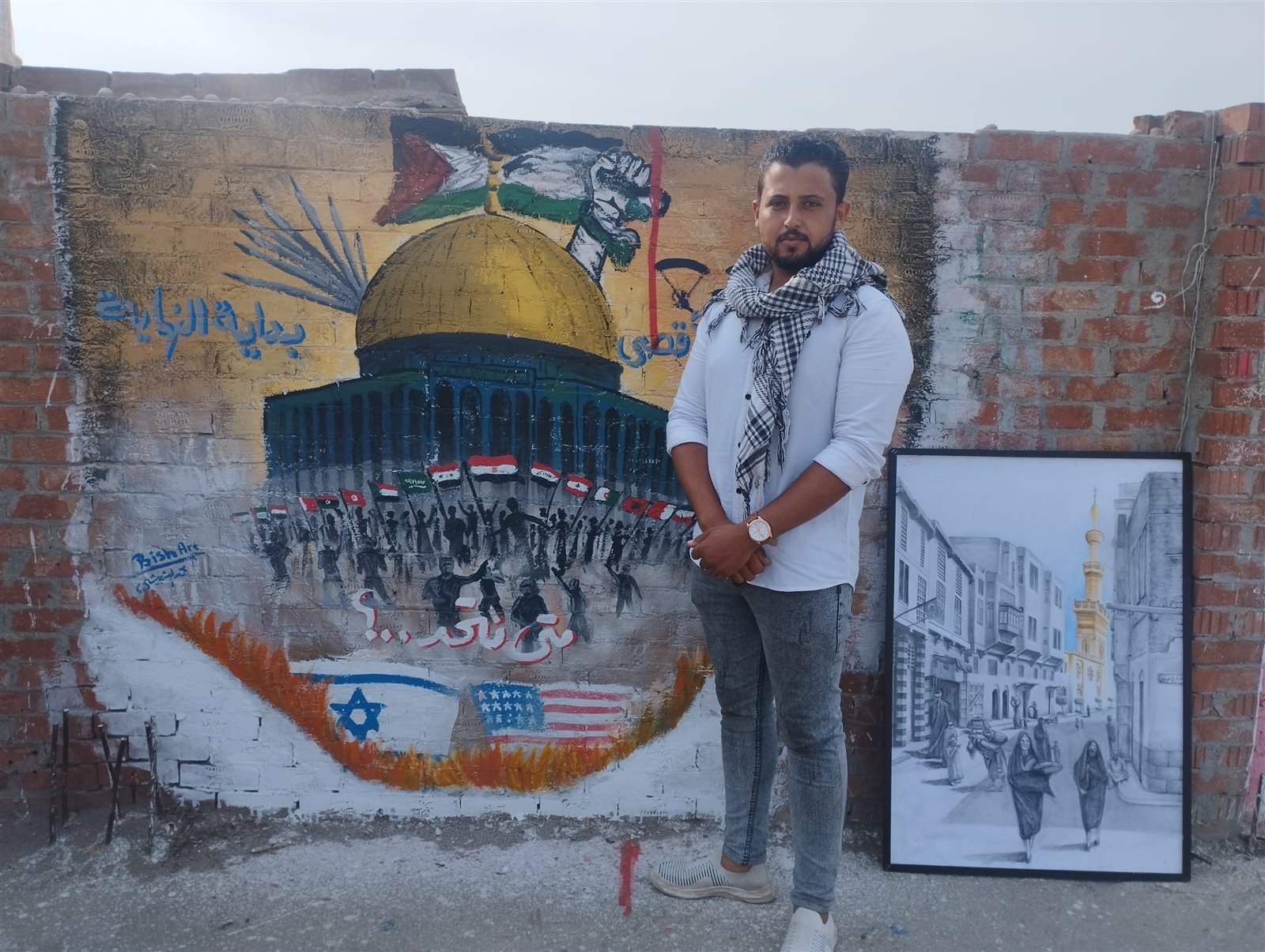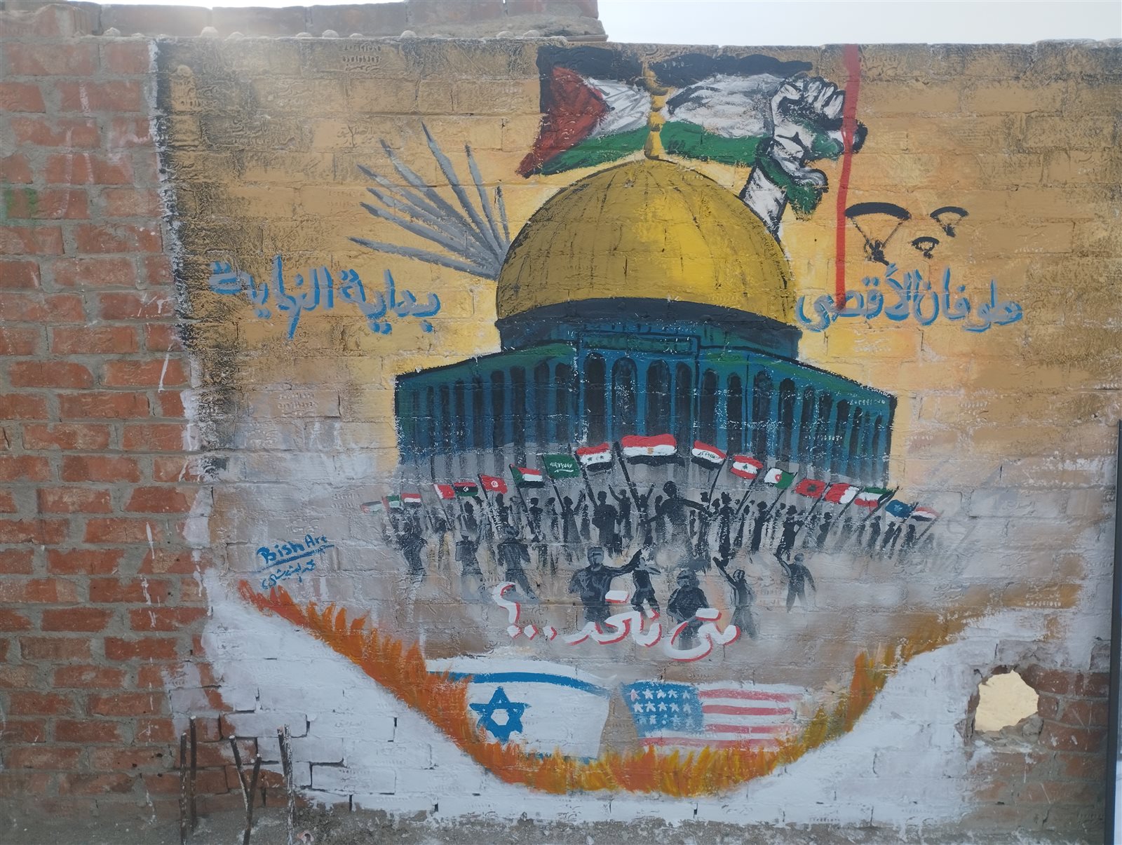 قام محمد البشبيشي ابن مدينة دمنهور بمحافظة البحيرة برسم جرافيتي على أحد حوائط منزله للمسجد الأقصي وقبة الصخرة، تضامنا مع دولة فلسطين الشقيقة، بعد أزمتها الأخيرة بسبب الاحتلال الغاشم، مشيرا إلى أهمية التكاتف من أجل القضية الفلسطينية وعلى الجميع التضامن وحتى بأقل الإمكانيات.