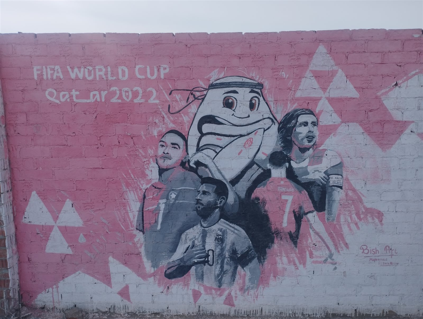 ويعد الجرافيتي صغيرة بحسب مساحته على أحد الحوائط ولكنه معبرا بشكل كبير على أهمية القضية الفلسطينية وهو عبارة عن رسمة القبة الصخرة والتى تحاصر بأعلام الدول العربية أسفلها للتأكيد على أهمية اتحاد الوطن العربي.