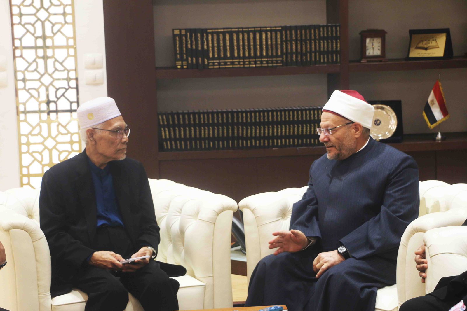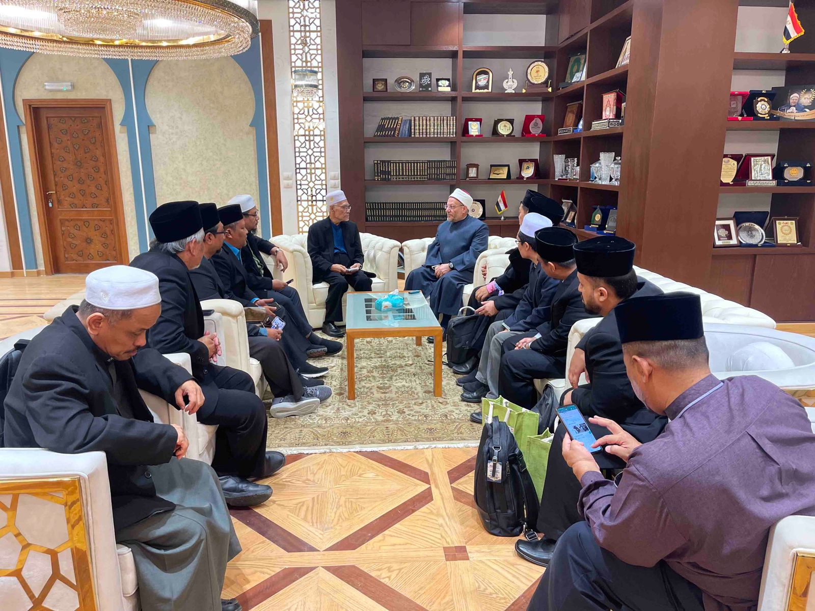 استقبل الدكتور شوقي علام – مفتي الجمهورية، رئيس الأمانة العامة لدور وهيئات الإفتاء في العالم- وفدًا ماليزيًّا رفيع المستوى من علماء دار الإفتاء بولاية "بينانج" الماليزية، يترأسه الدكتور وان سليم بن وان محمد نور -مفتي الولاية- وذلك لبحث أوجه تعزيز التعاون الإفتائي بين دار الإفتاء المصرية ونظيرتها الماليزية.
