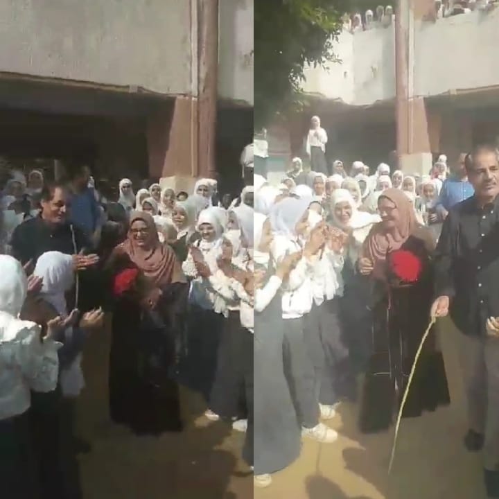 وفوجئت المعلمة باستقبال التلاميذ لها على باب المدرسة بممر شرفي وتصفيق حار، كرد للجميل للمعلمة التى كانت تدرس لهم حتى آخر أيام عمل لها قبل خروجها للمعاش، وقد غلبتها دموع التأثر بهذه اللافتة الطيبة، وكلمات الطلبات، حيث قال بعضهن: "ربنا يعيطها الصحة والعافية، ربنا يكرمها في حياتها، لم نر منها إلا الخلق ومساعدة الجميع".