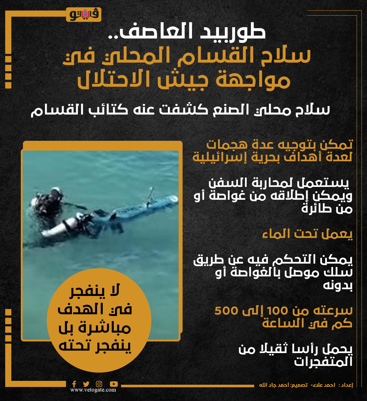 طوربيد العاصف.. سلاح القسام المحلي في مواجهة جيش الاحتلال (إنفوجراف) الأربعاء 01/نوفمبر/2023 - 11:05 ص 11/1/2023 11:05:20 AM طوربيد العاصف، فيتو احمد علاء شارك طباعة 18 حجم الخط شارك طباعة طوربيد العاصف القسام جيش الاحتلال كتائب القسام معركة طوفان الأقصى