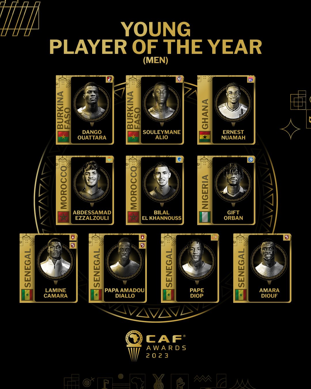 وأعلن الاتحاد الأفريقي لكرة القدم - كاف، اليوم الأربعاء، عن قائمة اللاعبين المرشحين لحصد جائزة أفضل لاعب صاعد في القارة السمراء.