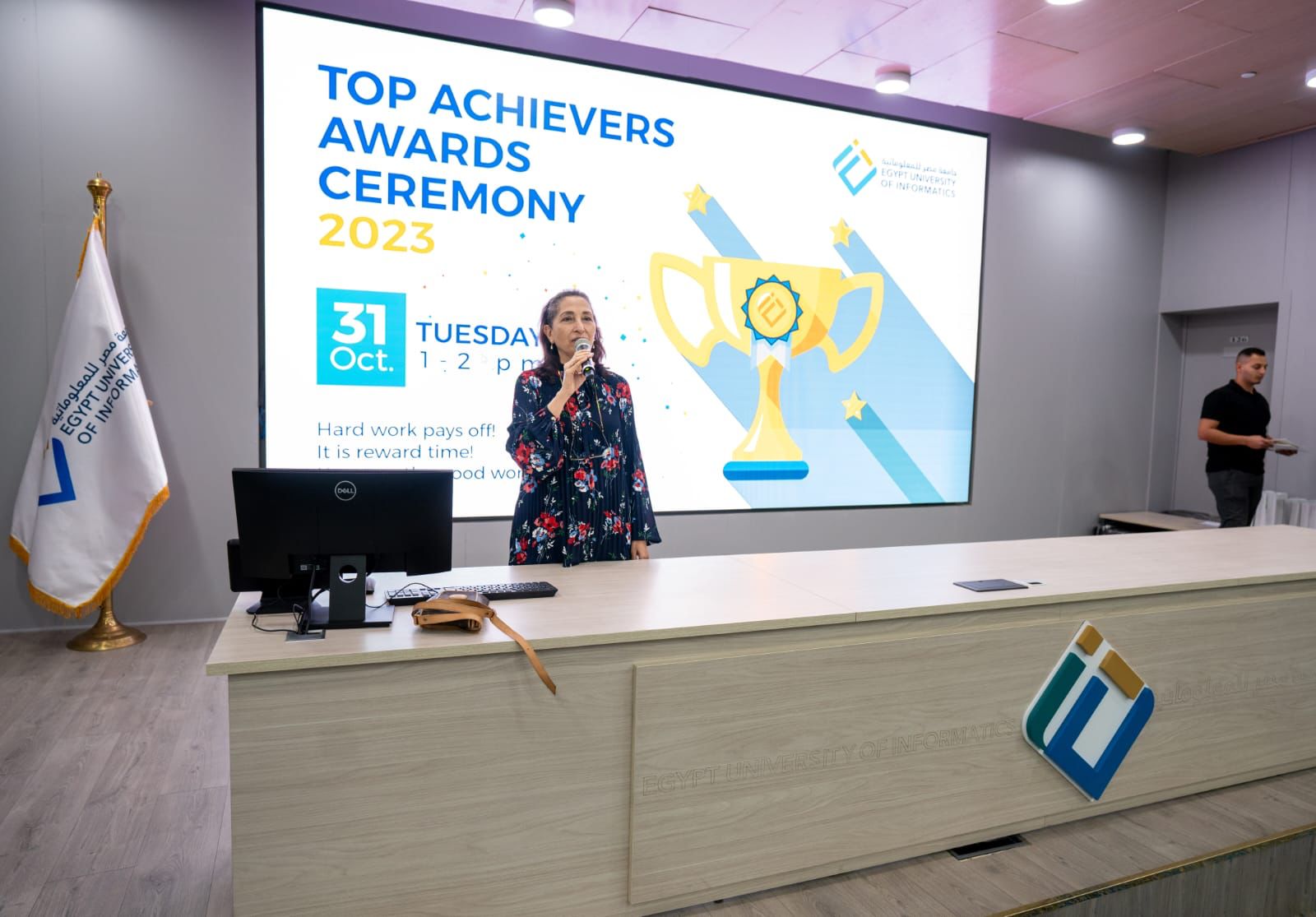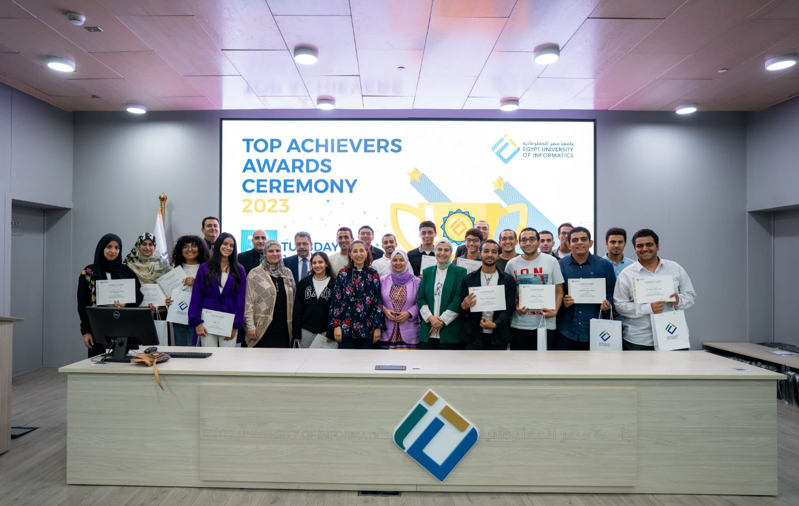وقامت الدكتورة ريم بهجت رئيس جامعة مصر للمعلوماتية بتكريم الطلاب المتفوقين ضمن قائمة الرئيس في كلياتها الـ 4 (الهندسة، علوم الحاسب والمعلومات، تكنولوجيا الأعمال، والفنون الرقمية والتصميم)، وكذلك كرم العمداء الطلاب المتفوقين في قائمة العمداء، كما تم أيضا تكريم الأبطال الأولمبيين والمتفوقين رياضيا من أصحاب المراكز المتقدمة محليا وعالميا.