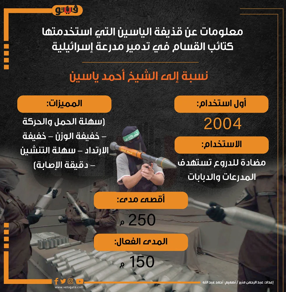 واستخدمت المقاومة قذائف الياسين، وهي قذائف أربي جي تستهدف المدرعات وناقلات الجند الإسرائيلية ونجحت في إسقاط عدد كبير من القتلى في صفوف جيش الاحتلال.