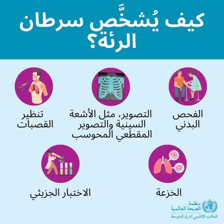 واشارت إلى أنه يتم تشخيص سرطان الرئة من خلال عدة طرق تشمل: