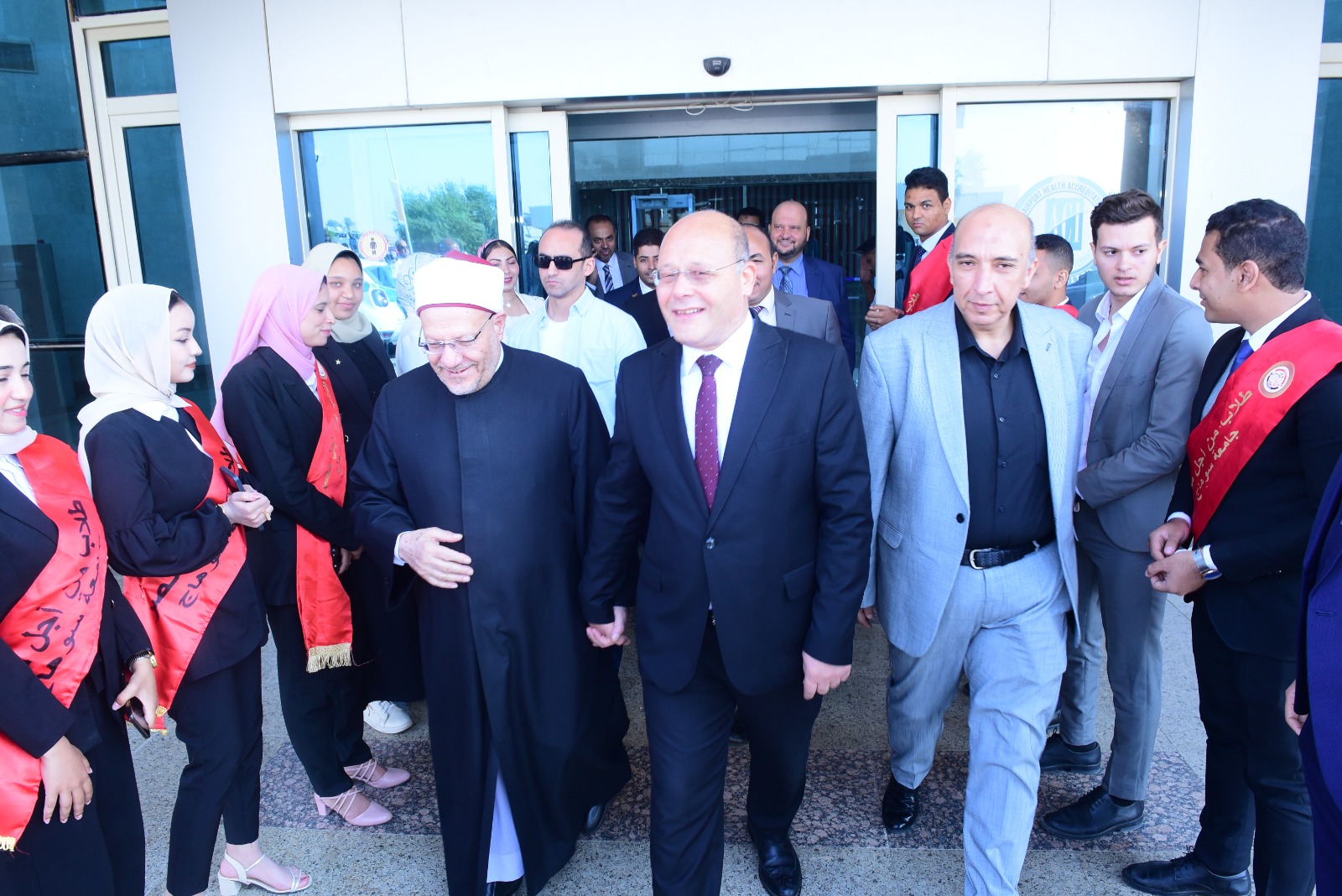 أعرب عن خالص سعادتي بقبول فضيلة المفتي الدكتور شوقي علام أحد أهم الأعلام الدينية المصرية البارزة، الذي يتبنى منهجًا فكريًا مستنيرًا دعوتي للحضور للجامعة، والمشاركة بإلقاء ندوة تثقيفية وتوعوية لأبنائنا الطلاب عن وسطية الدين الإسلامي.