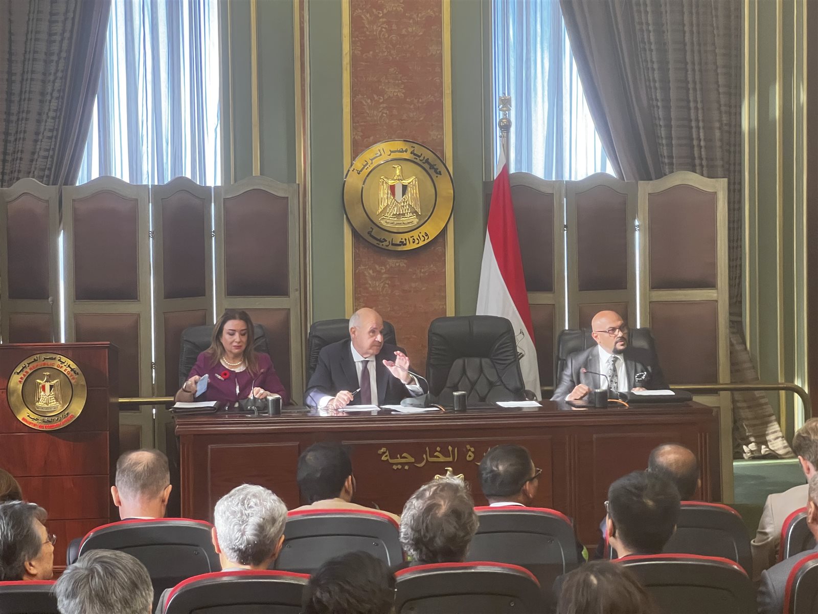 جاء ذلك خلال جلسة إحاطة للسفراء الأجانب فى مصر بشأن الترتيبات الخاصة بمعبر رفح.