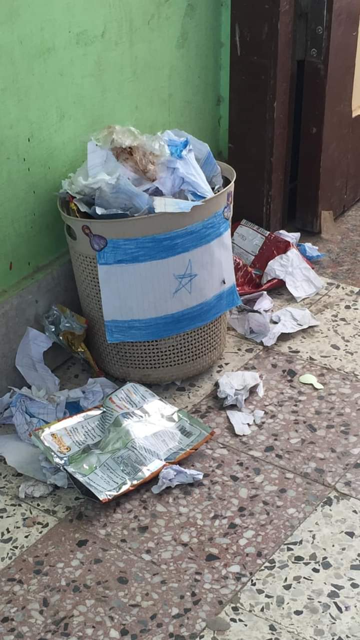 أطفال مدرسة بالغربية يرسمون علم الاحتلال على صناديق القمامة (صور)
