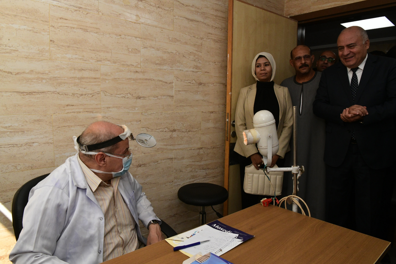 حيث تفقد محافظ قنا، أقسام العيادات الخارجية "الأنف والاذن، العظام، الرمد، المخ والأعصاب، الأطفال، العلاج الطبيعي، رسم القلب، الباطنة، الكلي، الجلدية، مسالك بولية، نساء وتوليد، المعمل، الصيدلية، العلاج علي نفقة الدولة".