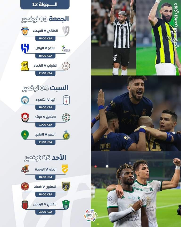مواعيد مباريات الجولة 12 للدوري السعودي