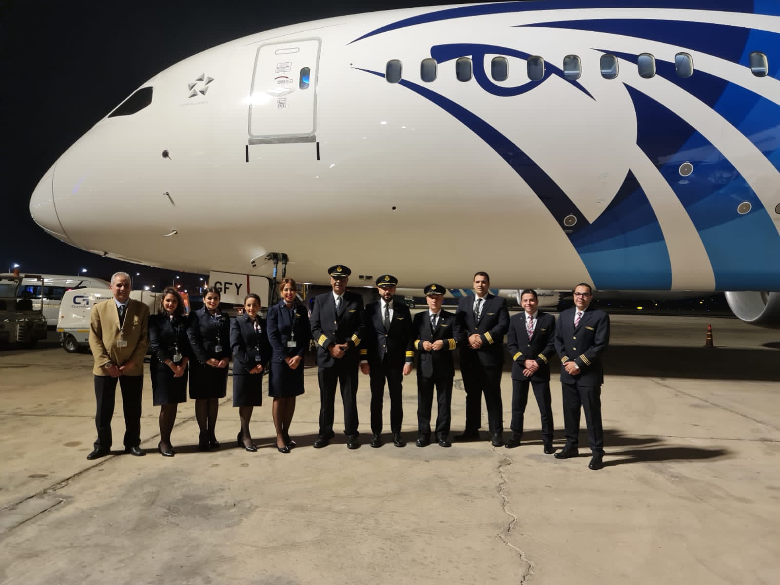 أعلنت الشركة الوطنية مصر للطيران عن انضمام الطائرة السابعة من طراز B787-9 دريم لاينر والمعروفة باسم طائرة الأحلام لأسطول الناقل الوطني مصر للطيران وذلك ضمن صفقة شراء 8 طائرات من طراز B787-9.