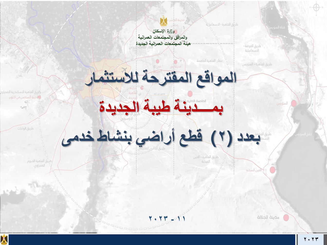 كما أعلنت وزارة الإسكان ممثلة في هيئة المجتمعات العمرانية عن تفاصيل طرح جديد للأراضي الاستثمارية بأنشطة متنوعة.
