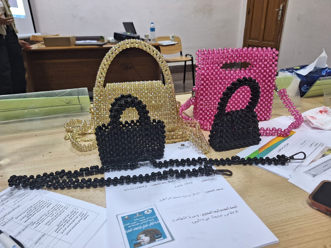 حيث إستقبلت اللجنة عدد من المشروعات المنتجة من الطلاب المتقدمين من الكليات المختلفة ( الحقوق – الألسن – التجارة – التربية – البنات -...)، والتى شملت على مشروعات مختلفة ( المنسوجات – السجاد اليدوى – الإكسسورات والحلى – الشموع – التطريز- الشنط اليدوية – مشغولات النحاس الأحمر المقاوم للصدى – منتجات الريزين – العطور – الكروشية – المكرميات - مشروع Es Move لتوليد الطاقة الكهربائية_...) ، وجاري فرز تقيمات السادة المحكمين لاختيار وترشيح المشروعات الفائزة للحصول على الدعم المقدم من وزارة التضامن الاجتماعي بقيمة تتراوح من عشرة الآف إلى خمسة عشر ألفًا للمشروع الواحد .