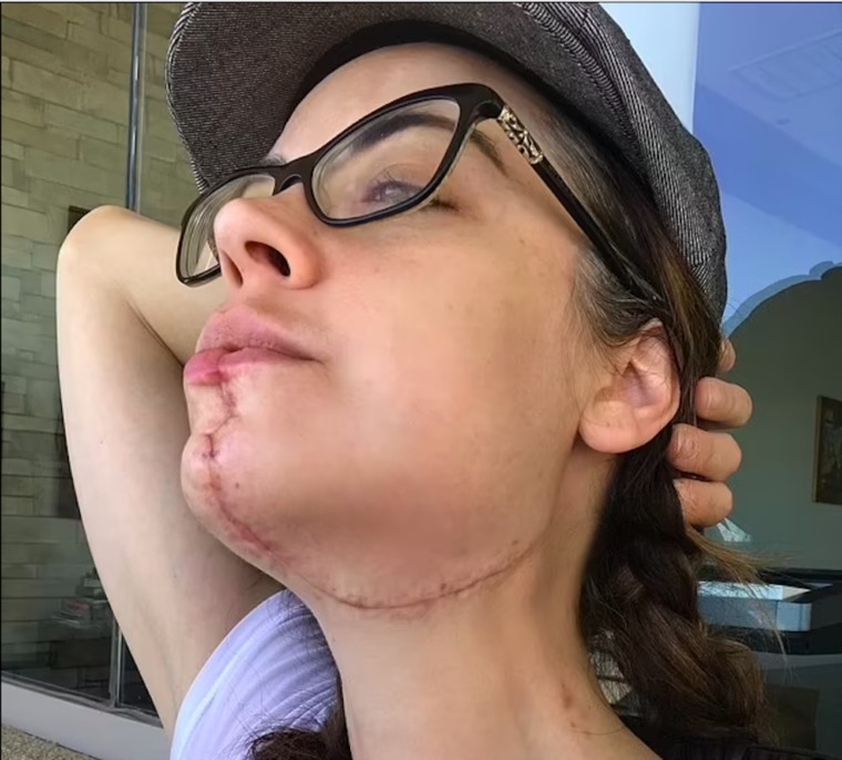 ولكن بعد مرور عام، بدأت تشعر بألم في أذنها وسرعان ما أصبح ألمًا لا يطاق، الأمر الذي دفع الأطباء لإجراء جراحة عاجلة لها، تم خلالها استئصال الفك السفلي، واستبدال عظم الفك، بعظم من ساقها.