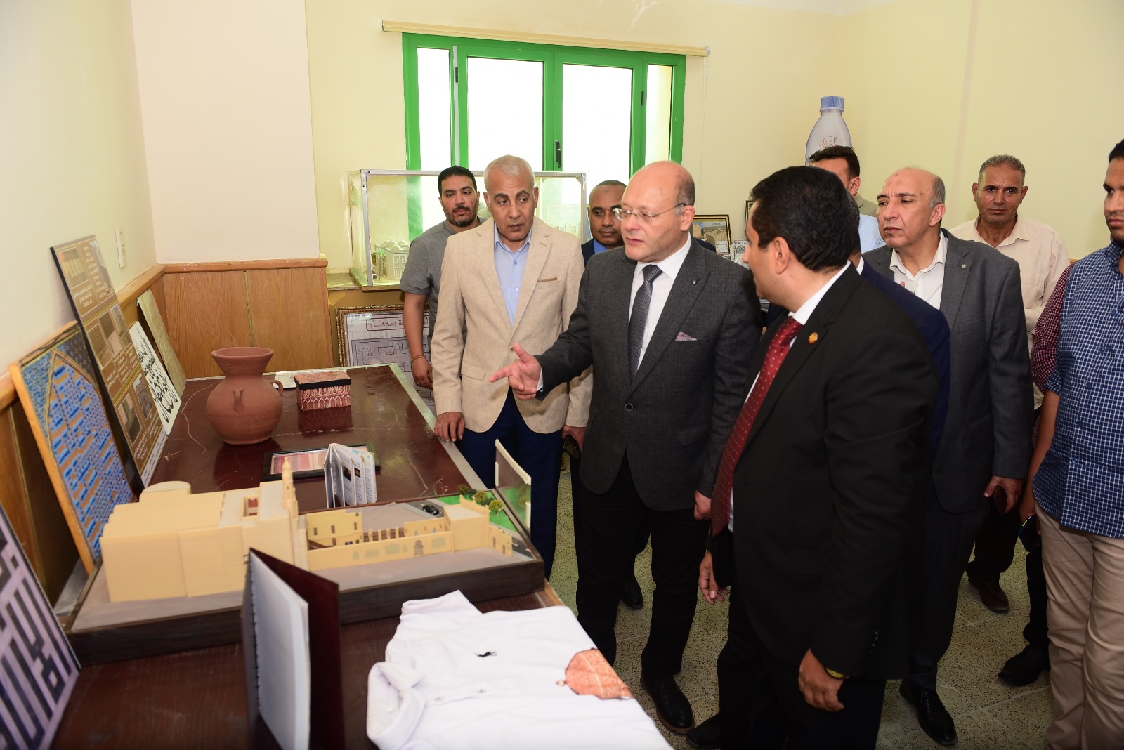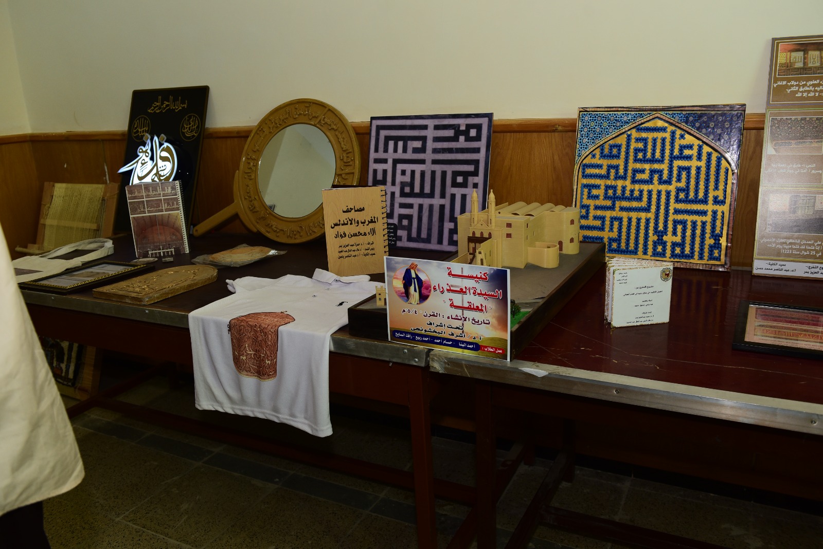 وذكر الدكتور علاء الدين عبد العال ان رئيس الجامعة تفقد عدد من المشاريع منها، مشروع مجسم الخريطة السياحية والاثرية لمحافظة سوهاج، ومجسمات لمسجد احمد بن طولون، وجامع السلطان شيخ زادة محمد باسطنبول، والكنيسة المعلقه بالقاهرة، وايضًا مشربية من الخشب، وبلاطة من الرخام مكتوب عليها بالخط الكوفي الهندسي عبارة الشهادة، مشكاة من الفخار، البوم على هيئة مصحف مغربي، البوم صور للطغراوات العثمانية، الي جانب مجموعة من الملابس مصور عليها بعض التحف العاجية الأندلسية، وغيرها من المشاريع والانشطة التي نفذها الطلاب.