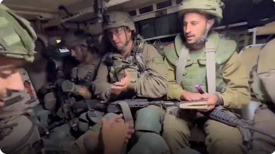 وكان جنود الاحتلال الإسرائيلي يرددون من داخل آليتهم العسكرية المحصنة أن "الله سيتم أنهى عمله في اليوم السادس وأكمله في اليوم السابع واستقر، طالبين من الله أن يبارك ما يقومون به في غزة وأن يحفظ جنود الاحتلال آمنين، ليعودوا إلى بيوتهم، وكانوا يرددون الأغاني الخاصة بهم"