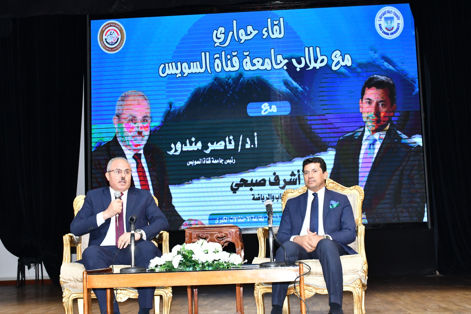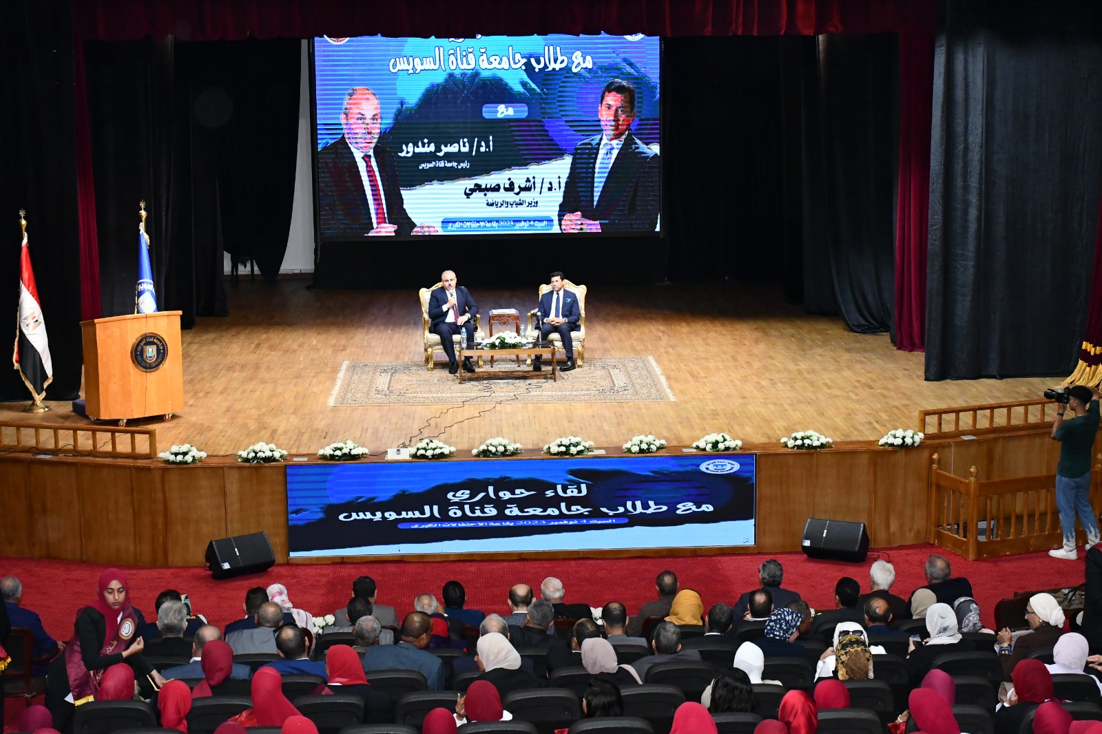 وزير الشباب والرياضة في حوار مفتوح مع طلاب جامعة القناة (صور)