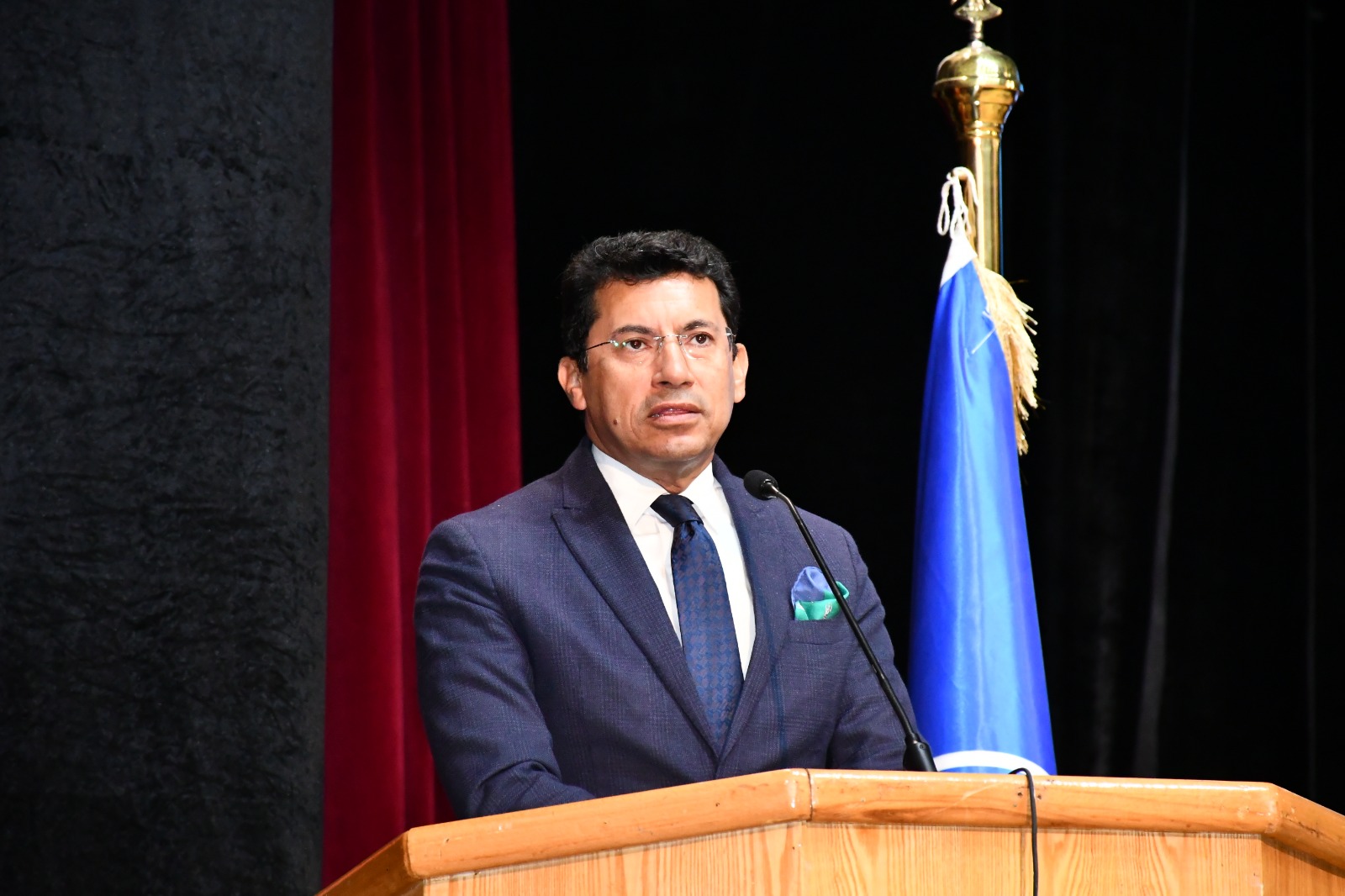 ثم وجه الدكتور أشرف صبحي كلمته للشباب قائلًا: أنتم الحاضر والمستقبل وأنتم محور اهتمام الدولة المصرية التي تسعى لبناء جيل مدرك للتحديات التي تواجه الوطن لديه حرية التعبير يعرف مصالح الوطن جيدا ويدافع مع مقدراته.