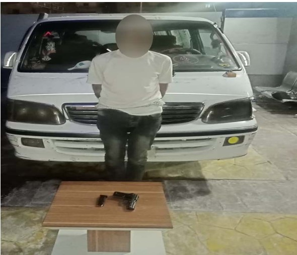 و بمواجهته اعترف بسرقة الميكروباص المنوه عنه بأسلوب "توصيل الأسلاك"، عثر بحوزته ( سلاح ناري "طبنجة" وطلقتان من ذات العيار) وتم اتخاذ الاجراءات القانونية تجاه الواقعة.