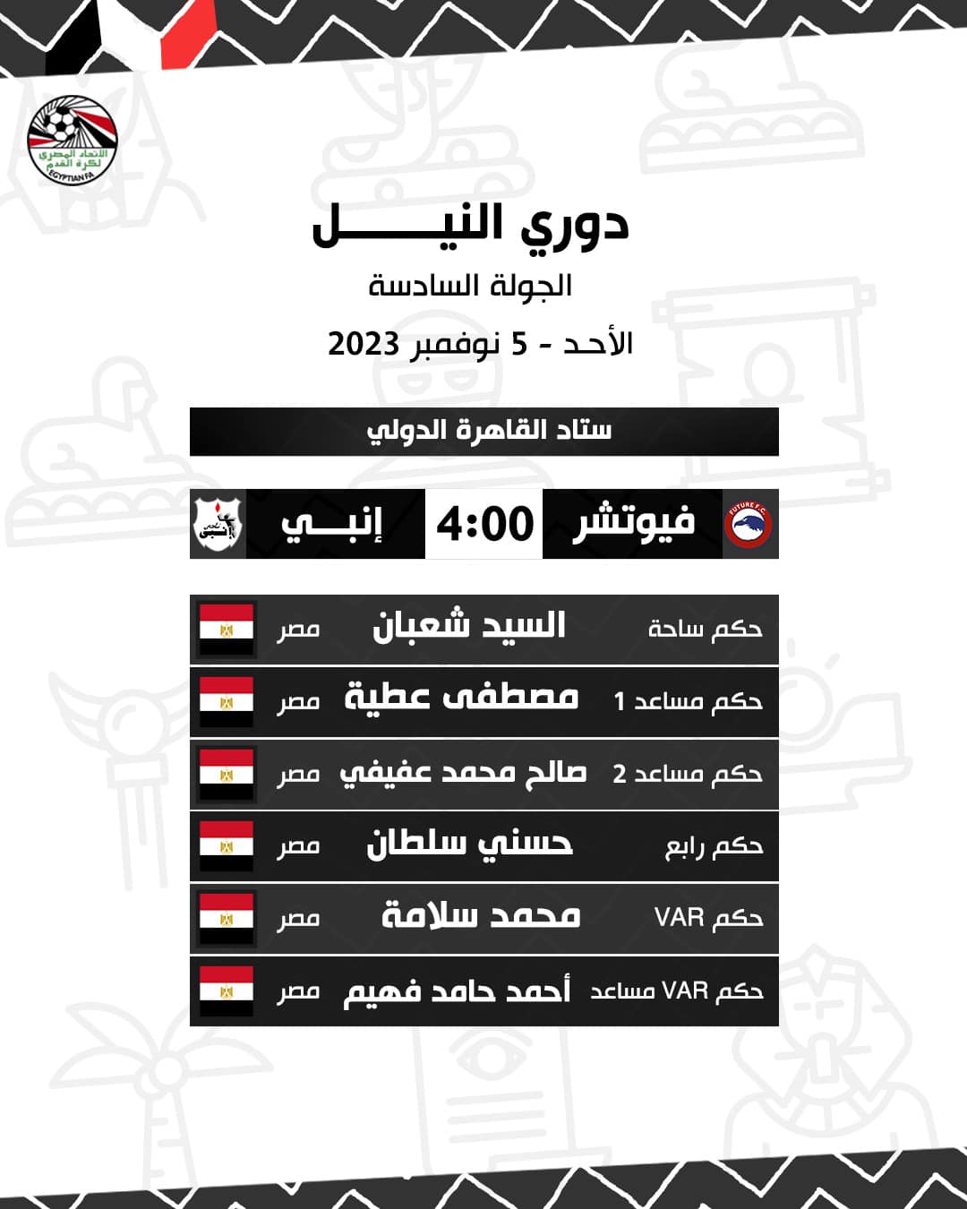 الدوري الممتاز، أعلنت لجنة الحكام الرئيسية باتحاد الكرة، أسماء حكام مباريات غد الأحد، ضمن مواجهات الجولة السادسة من الدوري الممتاز المصري لموسم 2023 - 2024.