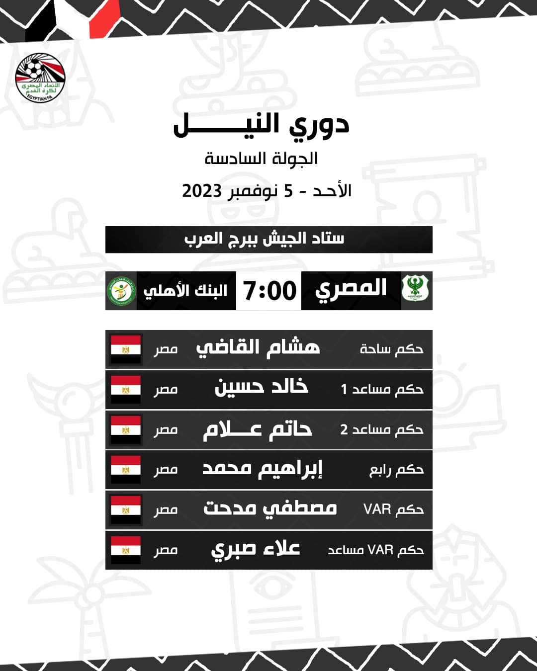 مباراة المصري أمام البنك الأهلي، وتنطلق في السابعة مساءً ويستضيفها إستاد برج العرب.