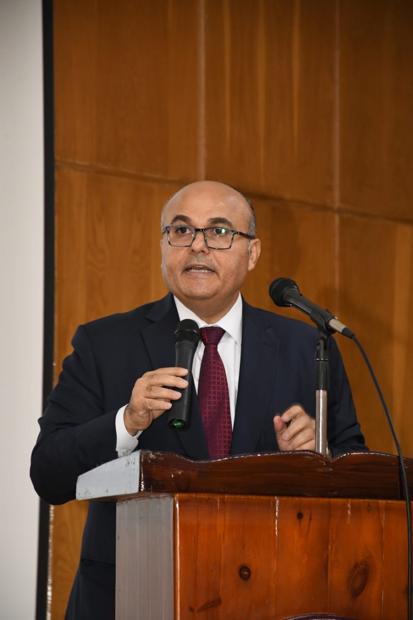 واختتم كلمته بان صيانة المجتمع من شرور هؤلاء المجرمين والحفاظ على أمن المجتمع وافراده وسلامة ممتلكاتهم، ولا يتحقق ذلك بطبيعة الحال إلا من خلال إعداد رجل القانون الإعداد المطلوب وتعزيز خبراتهم ومؤهلاتهم العلمية والتطبيقية، مؤكدا ان عملية البناء والإعداد والتأهيل ليست يسيرة، ولكن كلنا ثقة أن كلية الحقوق وما تمتلكه من تاريخ عريق وحاضر مضيء ومستقبل مشرق قادرة على تأهيل تلك الكوادر وأيضا المشاركة المجتمعية الفعالة للتصدي لتلك التحديات والمساهمة في وضع الأطر التشريعية الملائمة بالتعاون مع كل مؤسسات الدولة التشريعية والتنفيذية والقضائية من أجل ضمان الاستخدام الامن والعادل لتطبيقات الذكاء الاصطناعي.