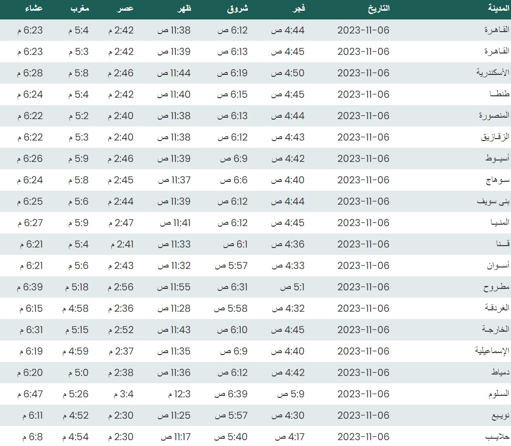 مواقيت الصلاة اليوم بتوقيت القاهرة