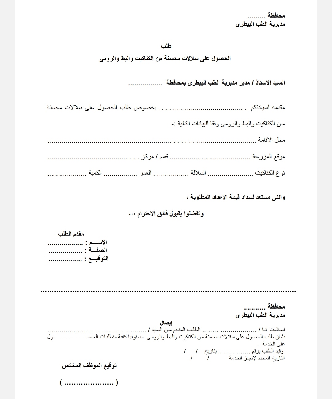 تلتزم الجهات المسؤولة بتقديم هذه الخدمة وفقًا للنموذج المعتمد الذي صدر في 10 يناير 2005، والذي يعد نتيجة للتعاون بين الجهاز المركزي للتنظيم والإدارة ووزارة الزراعة واستصلاح الأراضي والمحافظات.