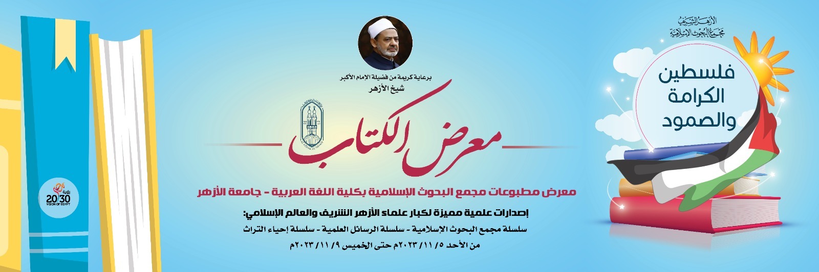 أعلن مجمع البحوث الإسلامية بالأزهر الشريف عن تنظيم معرض للكتاب بكلية اللغة العربية بالقاهرة، بعنوان: «فلسطين..الكرامة والصمود»، وذلك برعاية من فضيلة الإمام الأكبر أ.د/ أحمد الطيب – شيخ الأزهر وتوجيهاته بدعم كل الأنشطة التي تسهم في عملية التثقيف والتوعية للجمهور بما يحقق الوعي العام لديهم خاصة لدى الشباب بالجامعات.