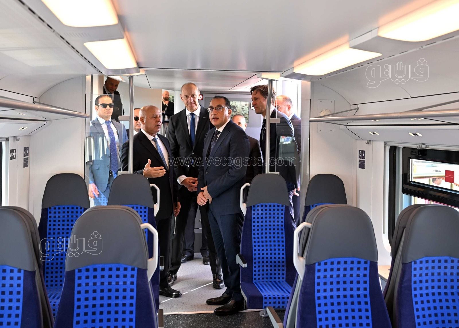 وانتقل رئيس الوزراء ومرافقوه لتفقد القطار الكهربائي السريع، مستمعا لشرح حول مكوناته، وامكاناته، وما به من وسائل أمان ورفاهية.