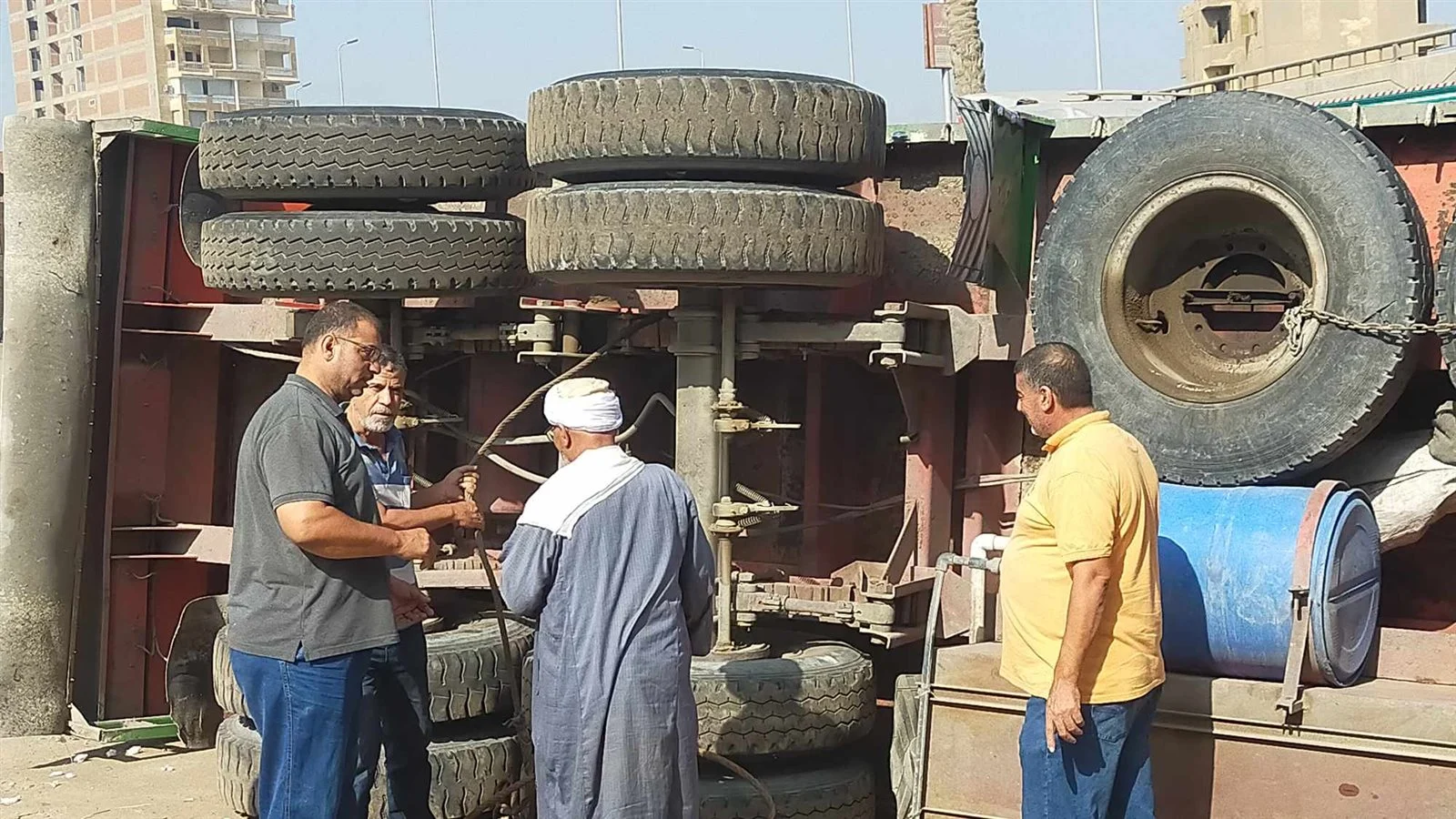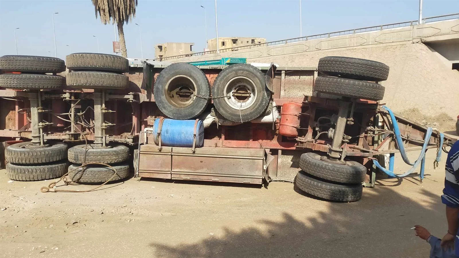 انقلاب سيارة نقل محملة قطن فى الغربية وإصابة السائق ومساعده